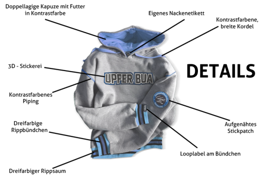 Wir designen und produzieren Sweatshirts von "Kopf bis Fuß". Dem Design und der Ausstattung sind hier ebenfalls keine Grenzen gesetzt. Alles wird individuell genäht, aufgestickt, bedruckt, etc. Ob Hoodie, Sweatjacke, ob mit oder ohne Kapzuze......alles ist möglich. Für Fanclubs, Vereine, Bands oder Firmen bietet sich dieser Service perfekt an, da der Auftritt einzigartig ist und niemand anderes mit diesem Sweat herumläuft. Dafür gestalten wir jeden Artikel exklusiv.