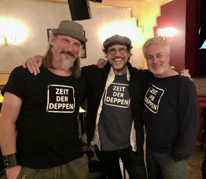 Zusammen mit Werner Schmidbauer haben wir eine sowas von lässige "Zeit der Deppen"- Kollektion entwickelt, das die Deppen der Zeit sich mal richtig umschauen können. Dabei war es unheimlich hilfreich, dass uns die Musik von Werner schon seit einer Ewigkeit begleitet und er auch noch ein toller und respektvoller Mensch ist. Das Zeug passt einfach perfekt in die Schmiede. Dem Helmfried von Lüttichau (mitte) gefällts auch!